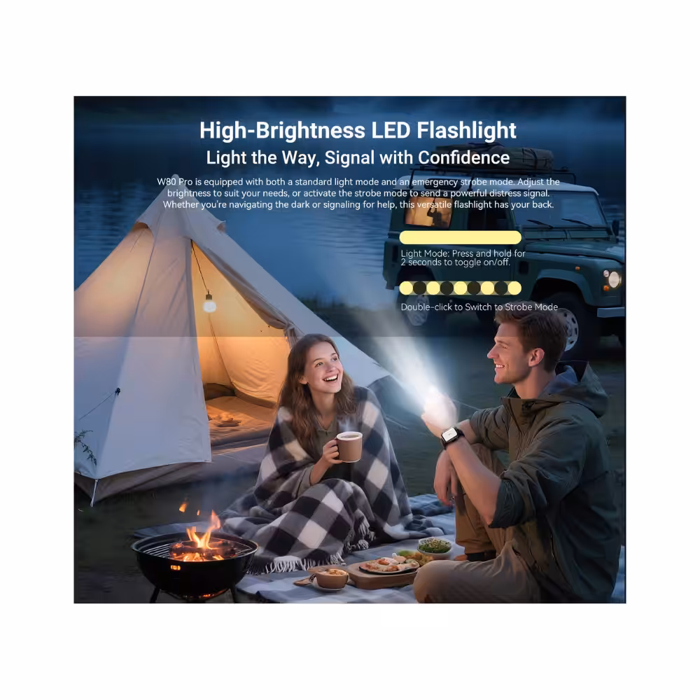 De Smartwatch W80 Pro is niet zomaar een accessoire, het is je persoonlijke assistent, fitnesscoach en dagelijkse metgezel. Dankzij het geraffineerde ontwerp en de geavanceerde functies blijf je moeiteloos verbonden en gezond. De Blackview W80 Pro heeft een versterkt glazen oppervlak dat bestand is tegen stoten en schuren en biedt een zaklamp. Het wordt ook geleverd met een ingebouwde flexibele siliconen polsband voor moeiteloos comfort. Met een 1,91″ scherm dat kristalhelder en 1000 nits is, geniet je van naadloze visuele interactie voor het bekijken van je oproepmeldingen of herinneringen met een 900 mAh batterij.