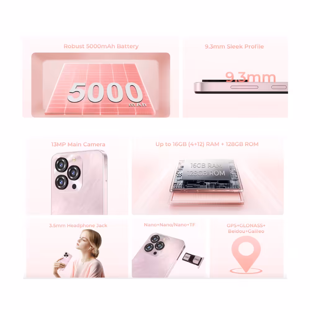 Ruimte genoeg voor jouw hele wereld Vergeet het verwijderen van foto’s of apps. De Oukitel C3 biedt 128GB opslag, zodat je je hele multimediabibliotheek overal mee naartoe kunt nemen. De Unisoc T310-processor en 4 GB RAM, virtueel uitbreidbaar tot 16 GB zorgen voor vloeiende prestaties bij dagelijkse taken met het besturingssysteem Android 14.